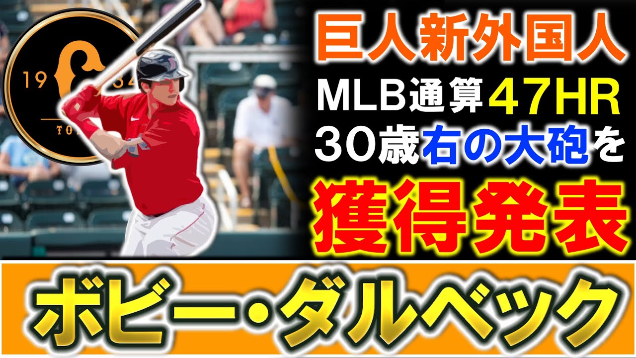 【ついに来た…!】巨人が新外国人として『ボビー・ダルベック』を獲得発表!MLB通算47HRを誇る右の内野手で、打球速度やバレル率はメジャーでもTOP級の大砲候補は岡本和真の代役に適任!?