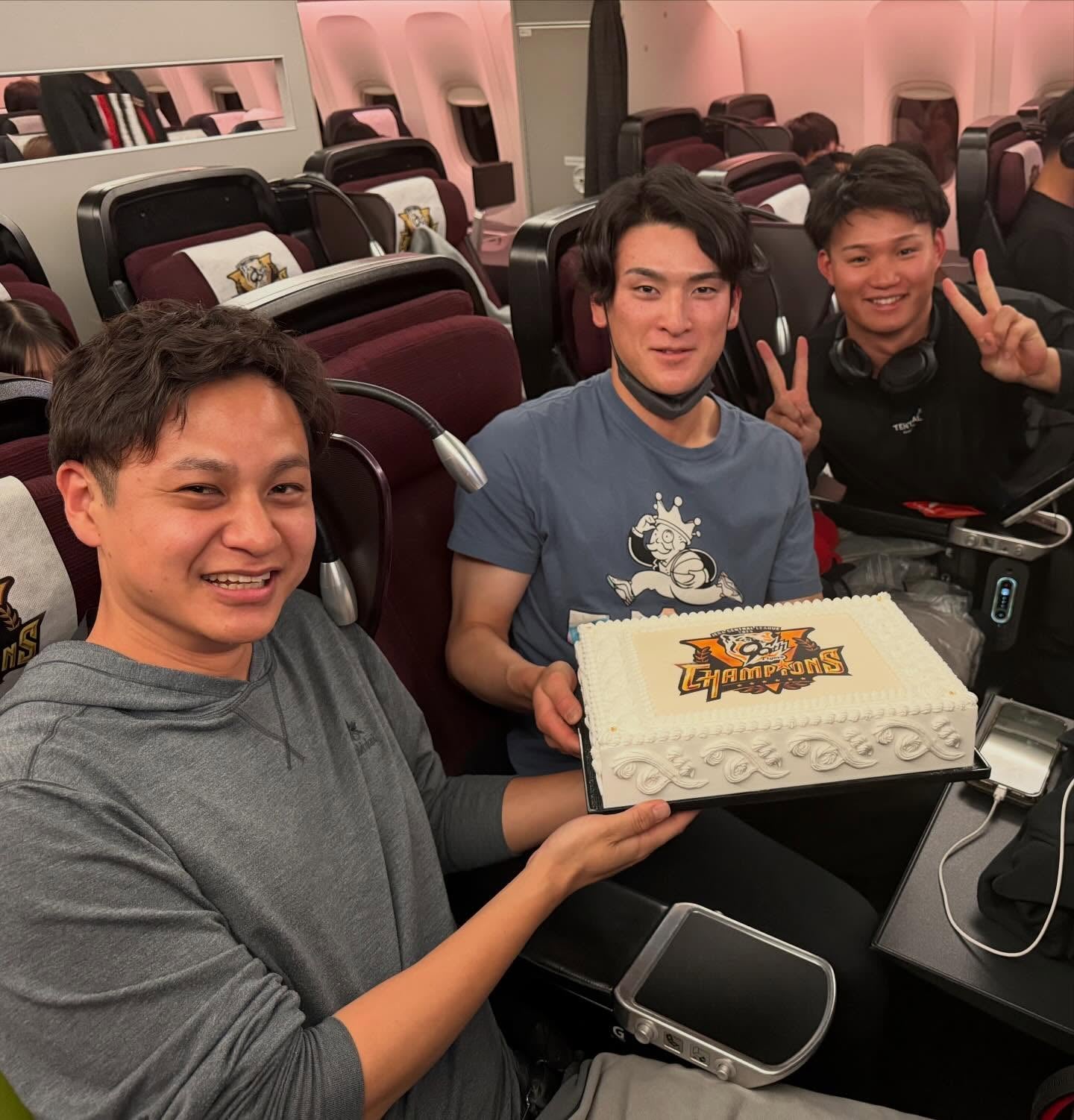 高寺と森下とともに阪神の優勝ケーキを掲げる写真も披露し、「和田さんオススメ ナチュールワイキキさんタイミング合わずで行けず…来年勝って絶対行きます!」と来季への意気込みも語った。