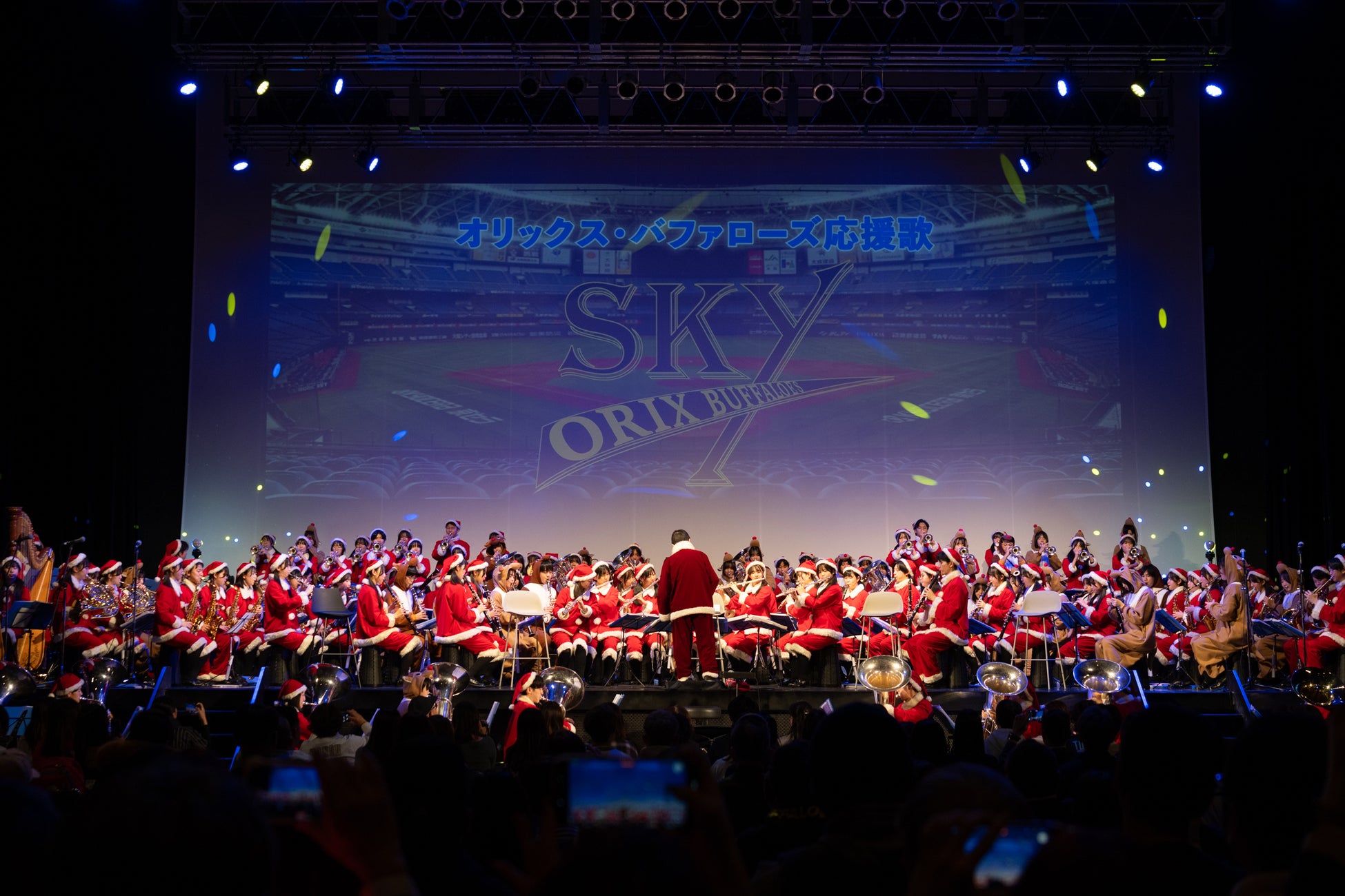 特に、オリックス・バファローズの応援歌として親しまれている『SKY』『BuffaYell』が流れると、客席からは自然と手拍子が生まれ、会場は一体感に包まれました。甲子園のアルプススタンドをそのままZepp Nambaに持ち込んだような迫力満点の演奏に、イベント全体への期待が大きく高まるオープニングとなりました。
