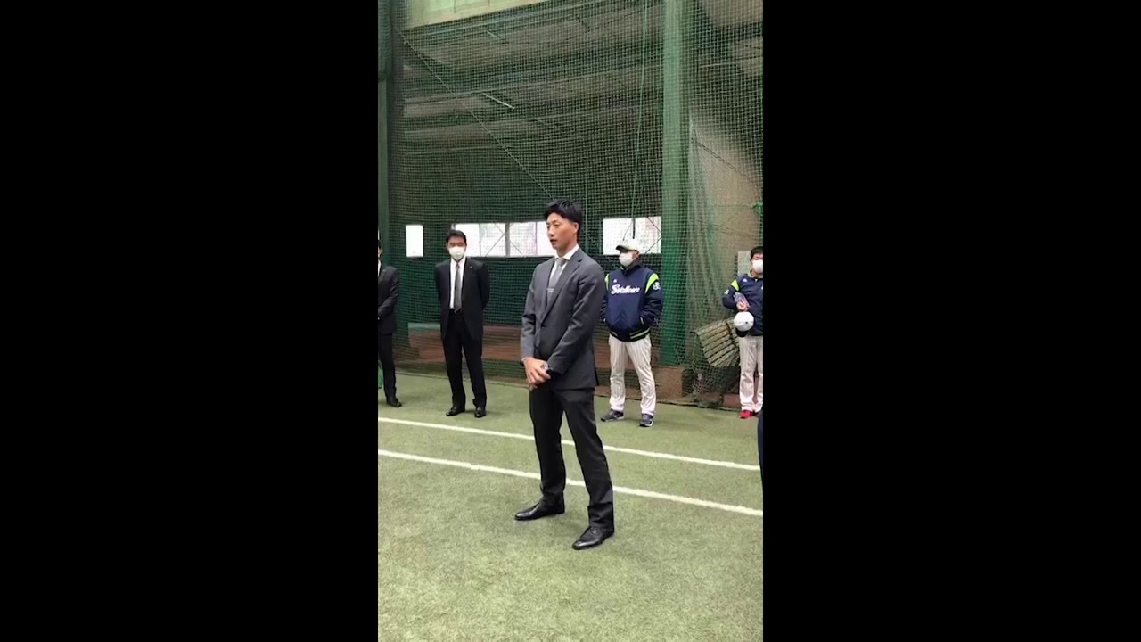 田口麗斗投手との交換トレードで巨人に加入することになった廣岡大志選手。3月2日のチーム練習前に最後の挨拶をしました。
