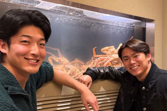 24日夜に山崎がインスタグラムのストーリーズを更新。オフの期間中に撮影されたとみられ、カニが入った水槽を背景に山本と笑顔で並んだ写真を公開した。14日に、地元の石川県加賀市でトークショーを行った山崎は「由伸は“継続の鬼”でした。毎朝早く起きて、自分のトレーニングを毎日欠かさずやっていました」と語っていた。