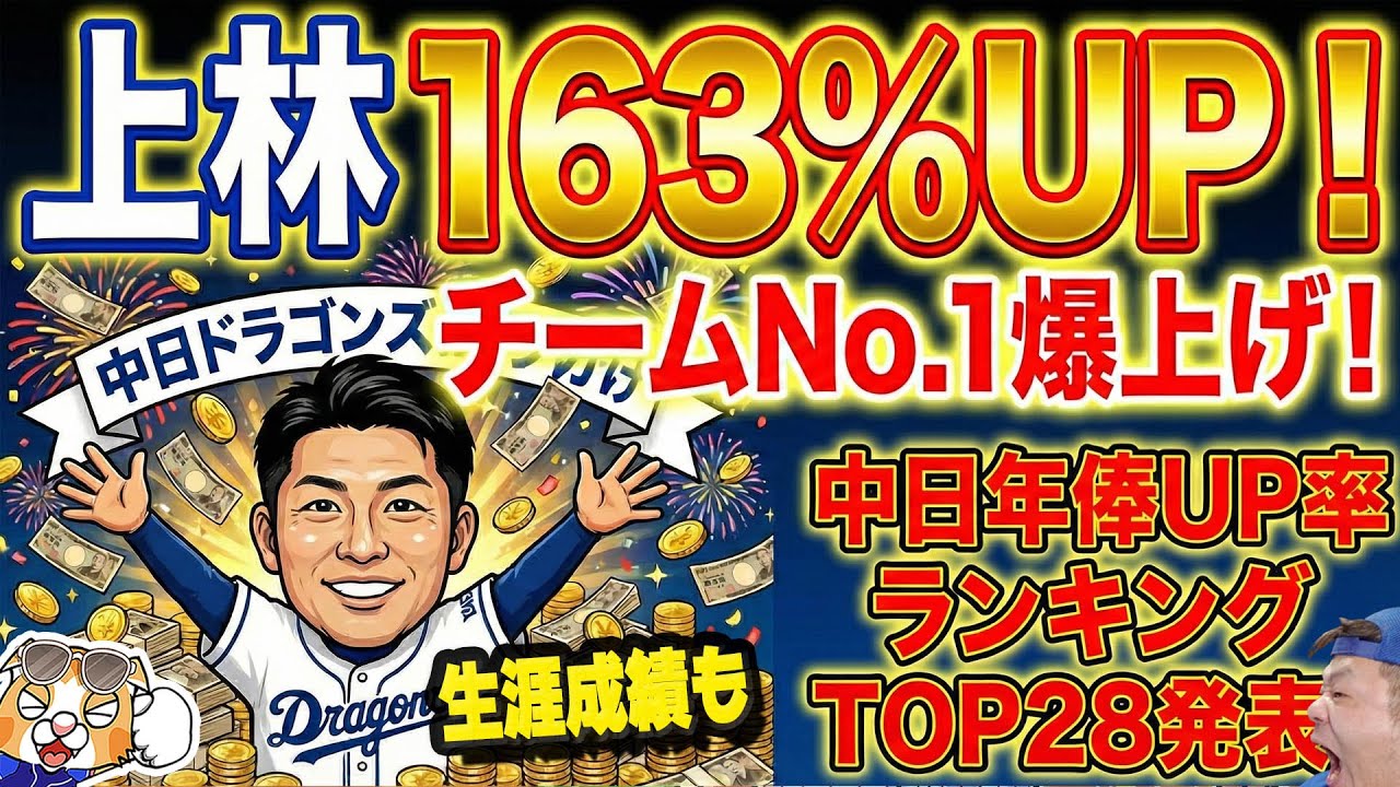 【中日ドラゴンズ】上林年俸大幅アップで更改!今季大幅アップ上位は誰だ!?上林きゅんのこれまでの成績推移も!【ライブ】