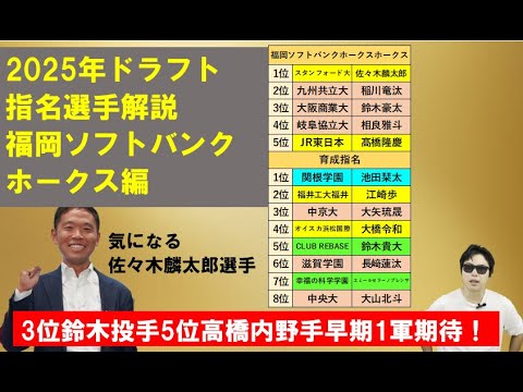 【福岡ソフトバンクホークス編】2025年ドラフト指名選手解説【西尾典文さん】