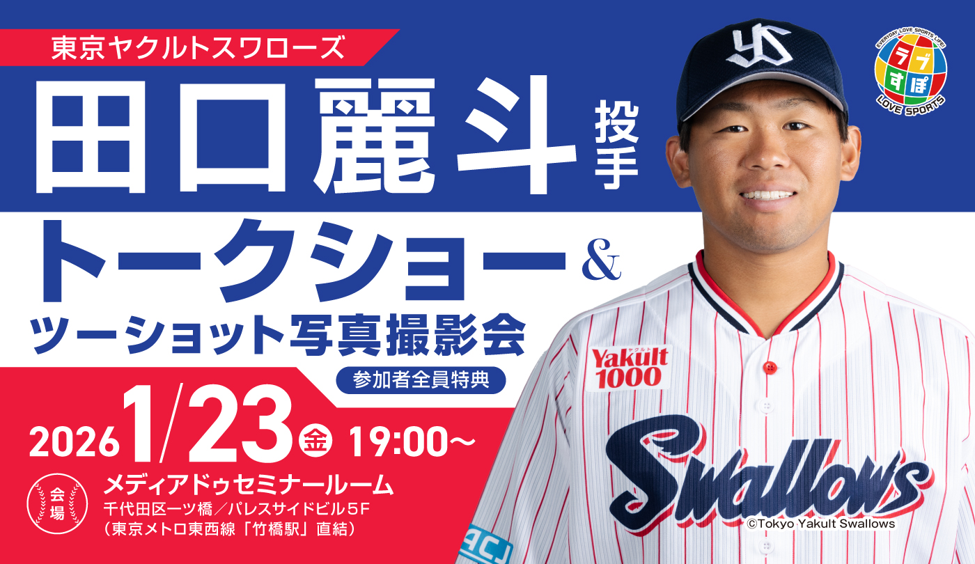 昨季オフに続き、東京ヤクルトスワローズ背番号「34」田口麗斗投手が『ラブすぽ』トークショーに登場!!