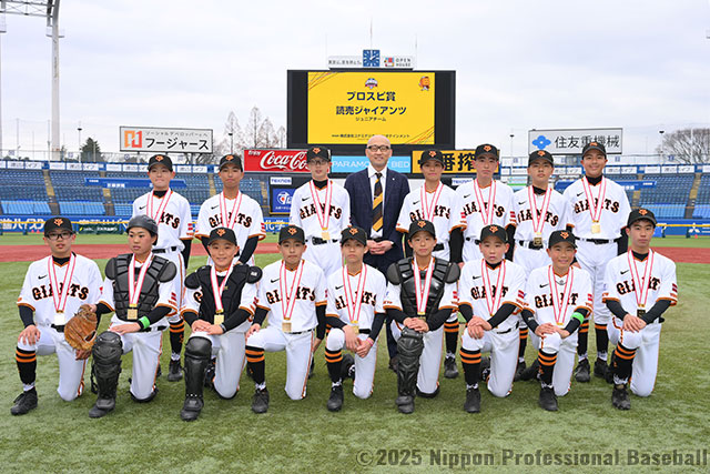 株式会社コナミデジタルエンタテインメントが特別協賛する「NPBジュニアトーナメント KONAMI CUP 2025」(明治神宮野球場、横浜スタジアムにて開催)において、チーム賞にあたるプロスピ賞を読売ジャイアンツJr.が受賞しましたのでお知らせします。