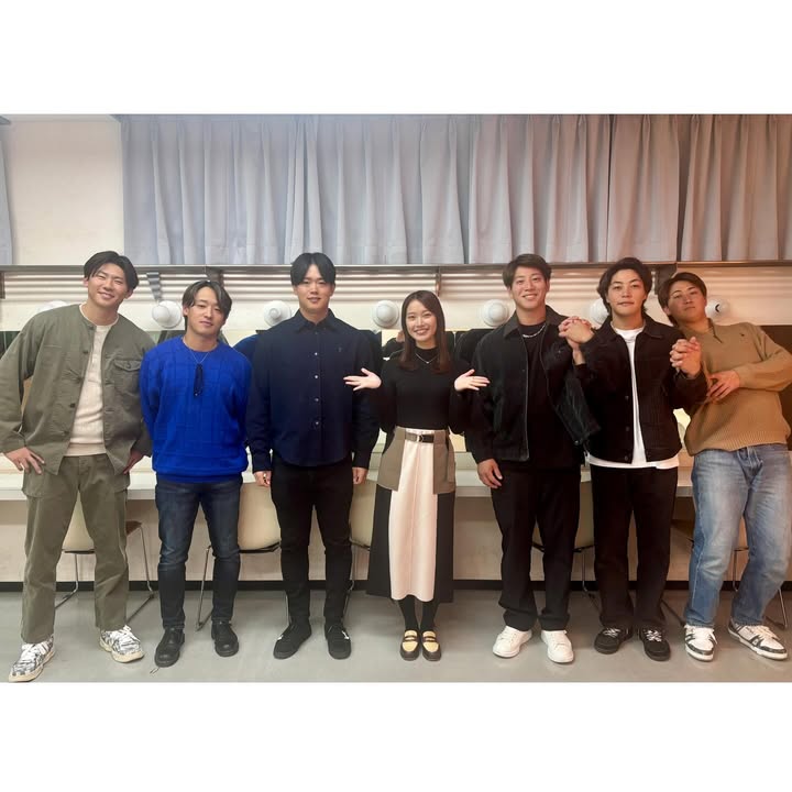 オリックス選手と共に出演するトークショーを終えたことを報告した。出演者が横一列に並び、リラックスした表情を見せる集合写真からは、会場全体に流れていた和やかな空気が伝わってくる。