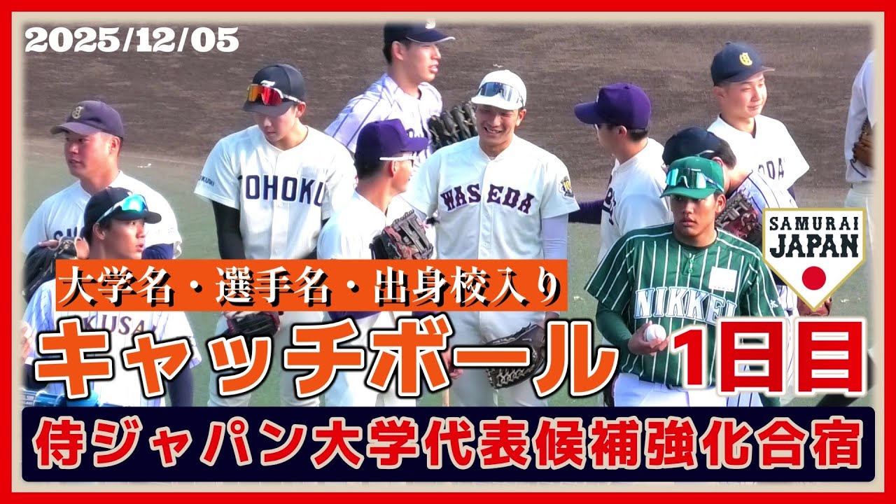 【≪キャッチボール(選手名テロップあり)/2025侍ジャパン大学代表候補合宿1日目≫大学生ドラフト候補たちが勢揃い!野手陣のキャッチボールの様子】2025/12/05侍ジャパン大学代表候補野手陣