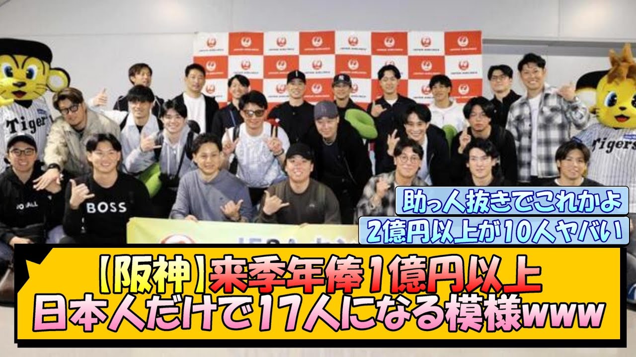【阪神】来季年俸1億円以上、日本人だけで17人になる模様www