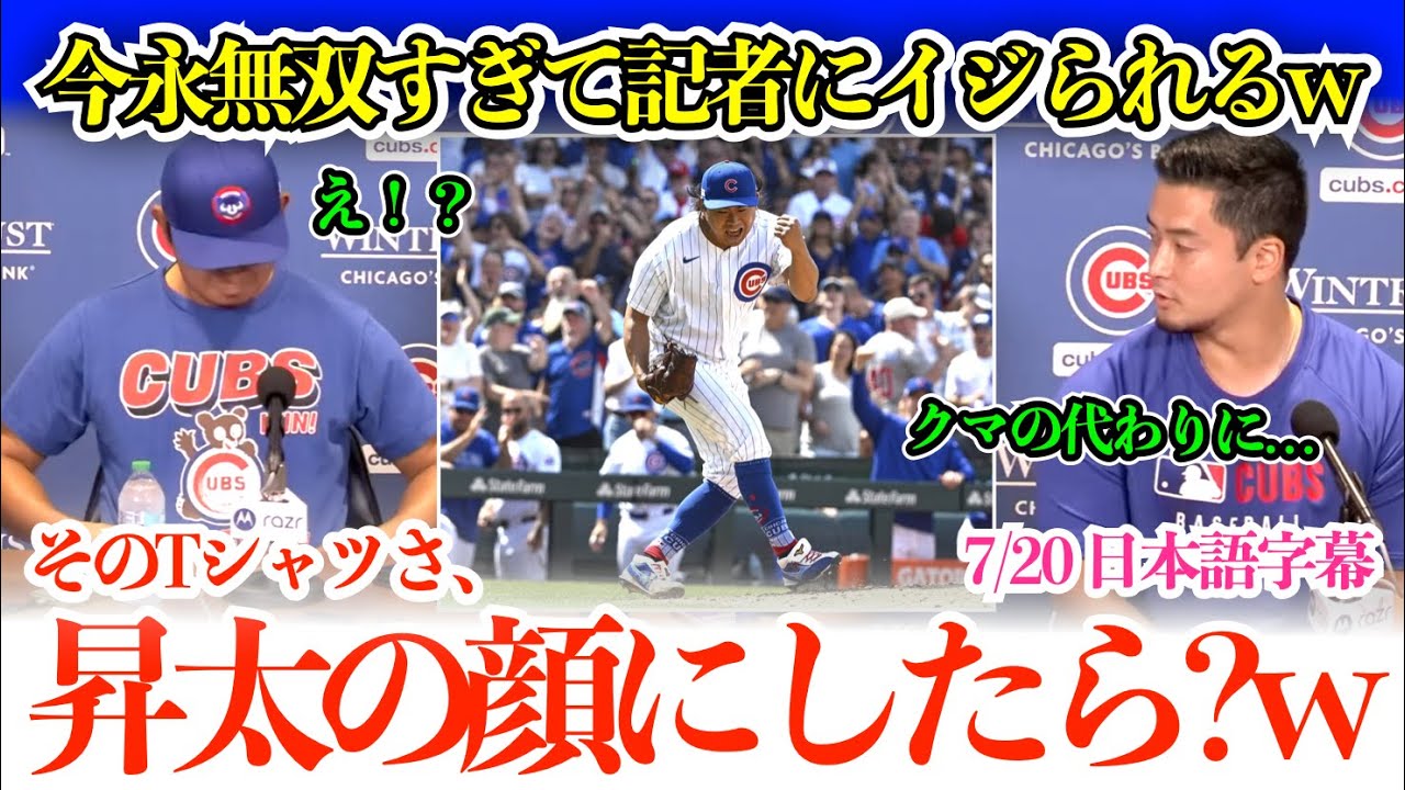 今永昇太、またも圧巻無双投球すぎて記者からイジられるw「そのカブスTシャツ、君の写真にすべきじゃない?w」【日本語字幕】