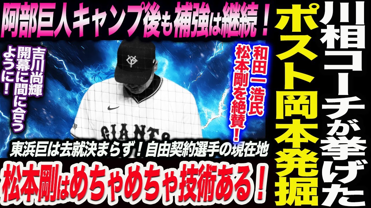 阿部巨人はキャンプイン後も補強は継続!東浜巨は去就決まらず!自由契約選手の現在地!川相コーチが挙げたポスト岡本!和田氏絶賛!松本剛は技術ある!読売巨人軍 ジャイアンツ 巨人 GIANTS 阿部監督