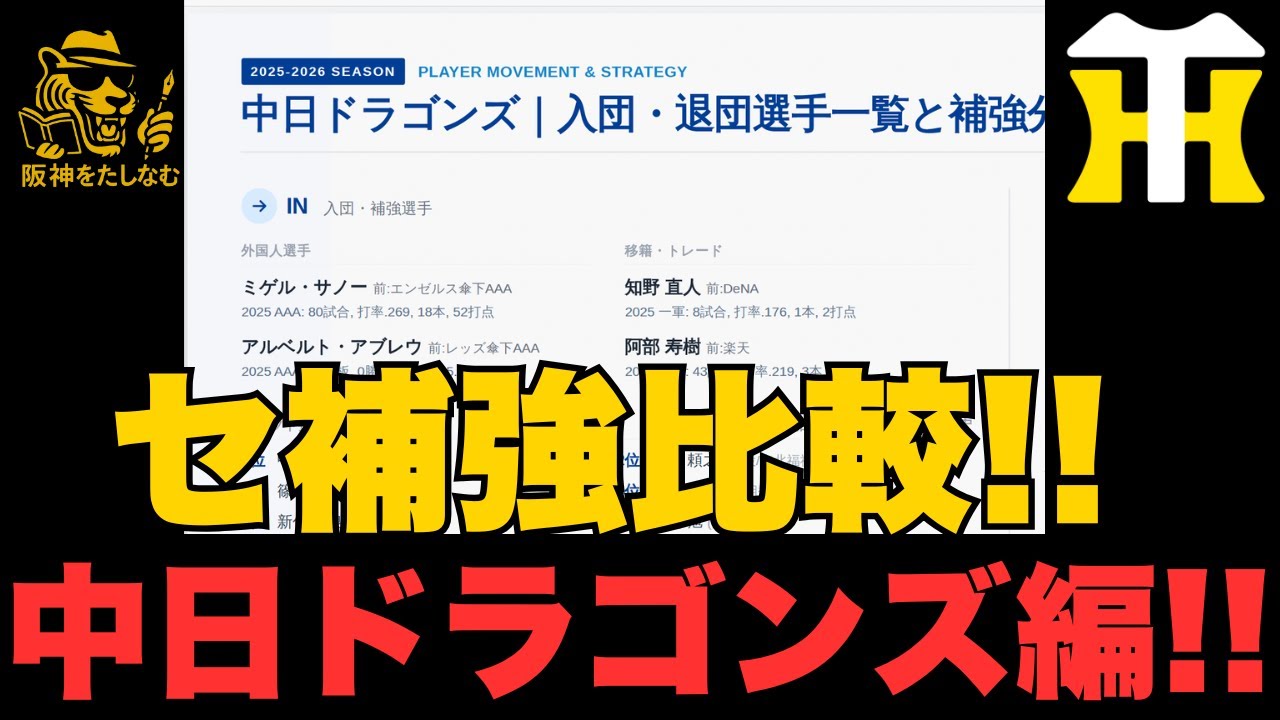 阪神連覇への道🔥評価の高い中日ドラゴンズがどれくらい戦力アップしてるのか⁉️中日ドラゴンズ編‼️セリーグ補強比較#阪神タイガース#セリーグ順位予想 #阪神タイガースをたしなむ#中日ドラゴンズ 補強