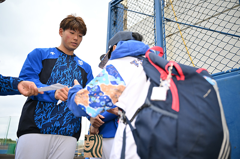 当日バッティング練習を終えた野手1名よりサインをプレゼント!