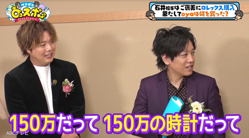 お笑いコンビ・ぺこぱの松陰寺太勇が金額をたずねると、石井投手は「え~でも、150万ぐらいの。ロレックスを」とポツリ。衝撃の価格に、共演者全員がザワついた。