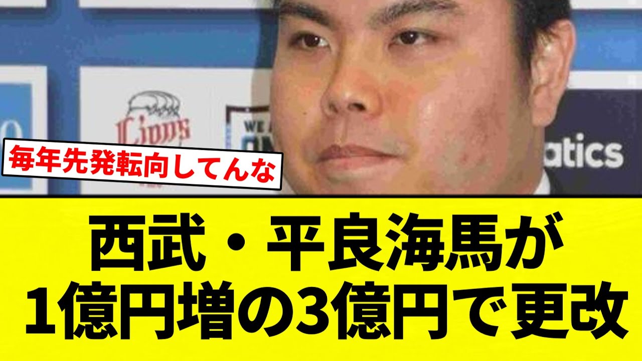 【平良ゲーム】西武・平良海馬が1億円増の3億円で更改 来季は先発再転向【プロ野球反応集】【2chスレ】【なんG】
