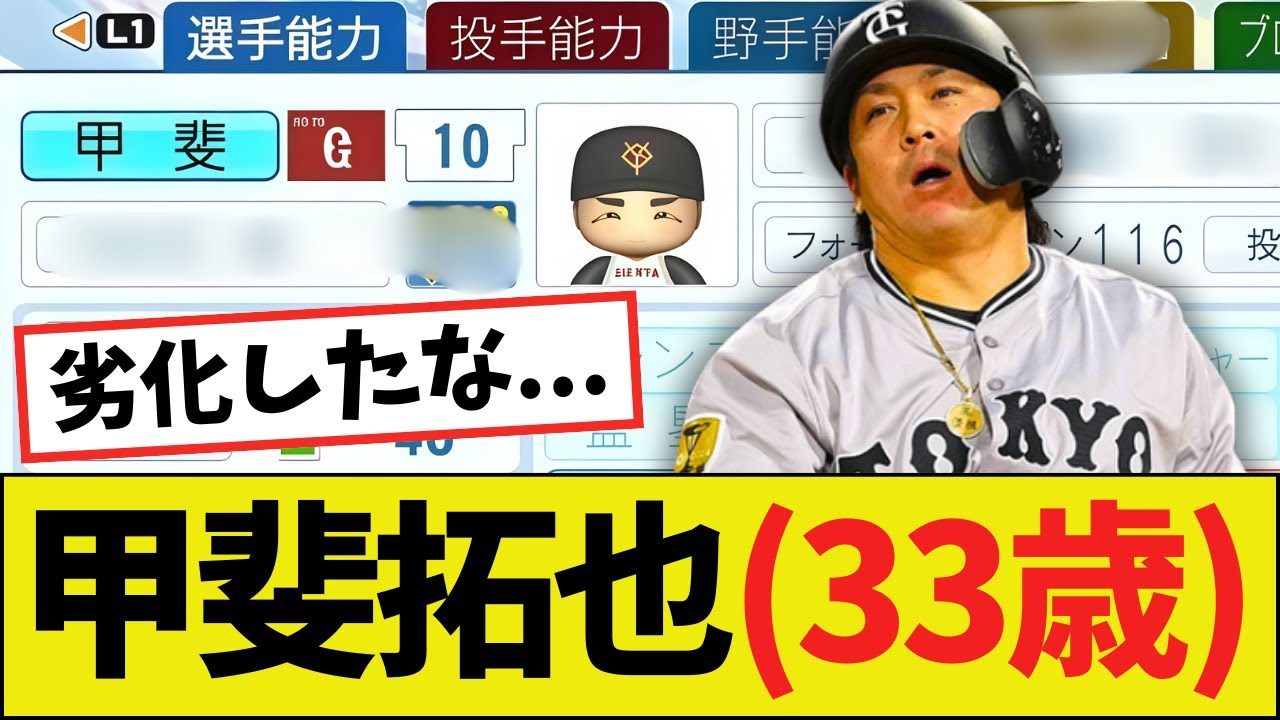 【悲報】巨人・甲斐拓也(33歳)さん、パワプロ2025決定版の能力wwww