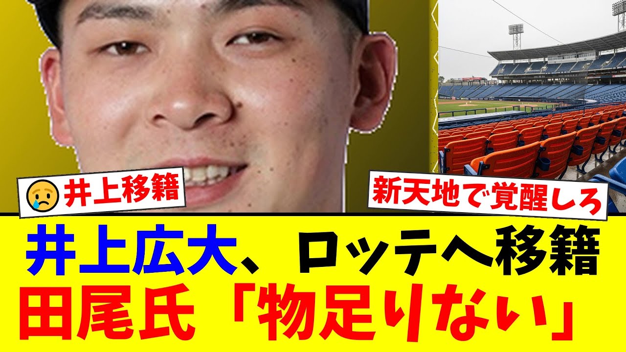 現役ドラフトで阪神タイガースの井上広大選手が千葉ロッテマリーンズへ移籍することが決定しました。期待されながらも伸び悩んだ大器に対し、OBの田尾安志氏は厳しいながらも的確な分析を披露。この移籍に対するファンの様々な声をお届けします。