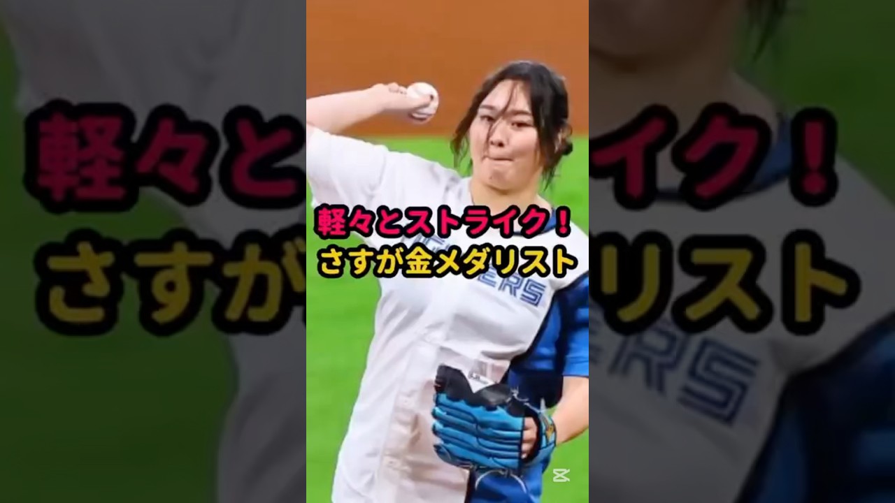 やり投げ金メダリストのポテンシャルが凄い! #始球式 #野球女子 #プロ野球