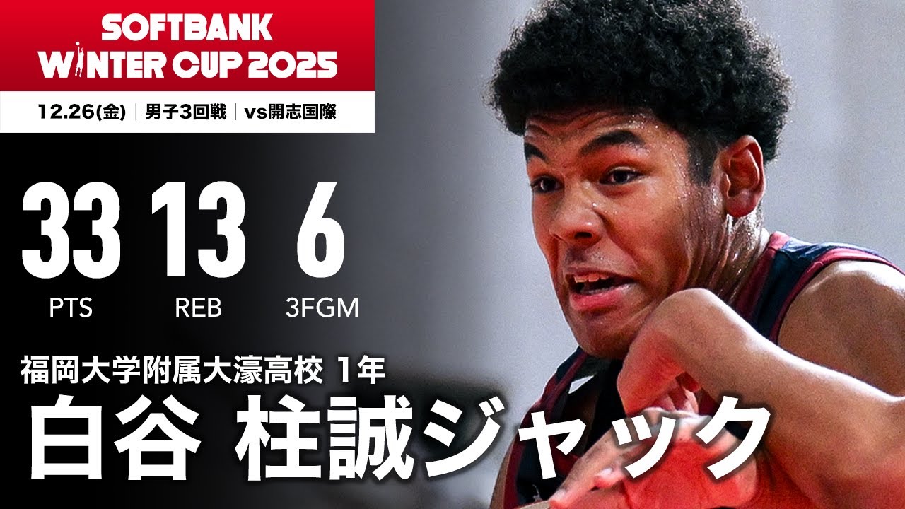 【高校バスケ】スーパールーキーが3Pシュート6本を含む33得点!|白谷 柱誠ジャック(福岡大学附属大濠1年|194cm)|SoftBank ウインターカップ2025