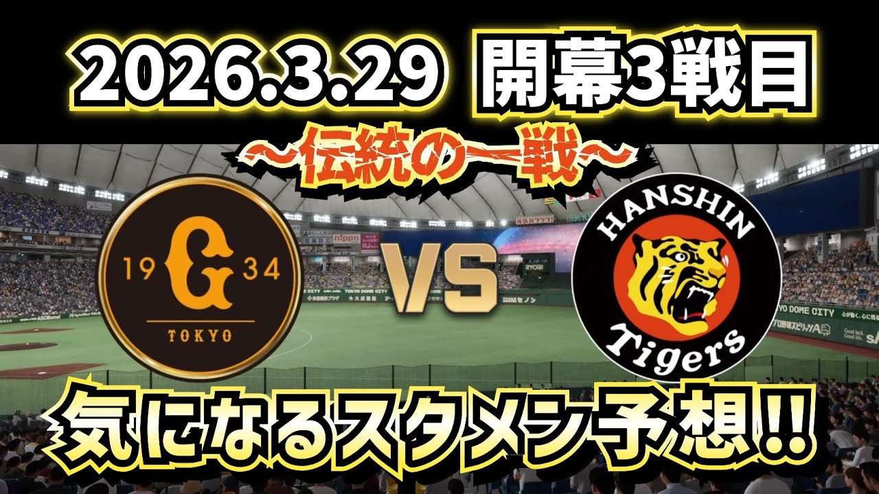 【最新予想】2026.3.29巨人vs阪神 開幕3戦目スタメン予想‼