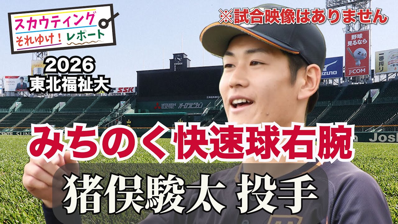 【阪神タイガース】ドラフト候補 それゆけ!スカウティングレポート2026<東北福祉大学> 猪俣駿太 投手 みちのくの快速右腕として大注目の大学生右腕。先発完投型の貴重な上位指名候補だ!