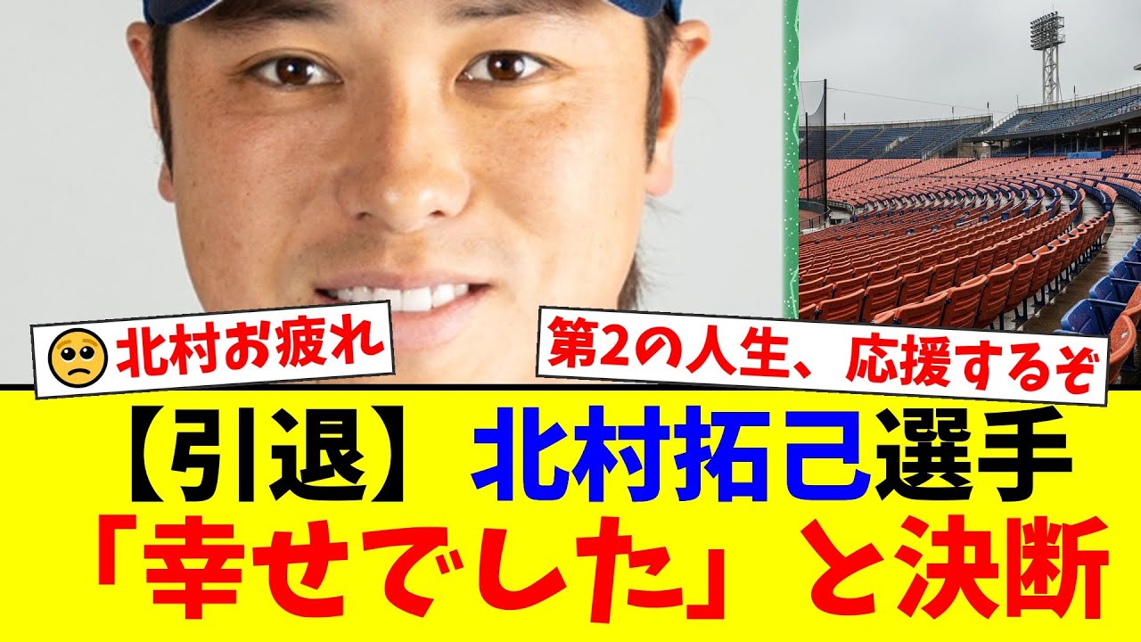 ヤクルトの北村拓己選手が現役引退を発表。NPBからのオファーを待ち続けた苦渋の決断と、経営者として支える妻・伊藤祐奈さんとの新たな門出について、ファンの反応をまとめました。