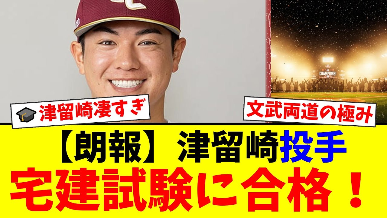 東北楽天ゴールデンイーグルスの津留崎大成投手が、難関の「宅建」試験に合格!現役プロ野球選手がシーズン中に猛勉強し、見事合格を勝ち取った快挙にファンから絶賛の嵐。文武両道を体現する津留崎投手の挑戦と、来季への決意に迫ります。
