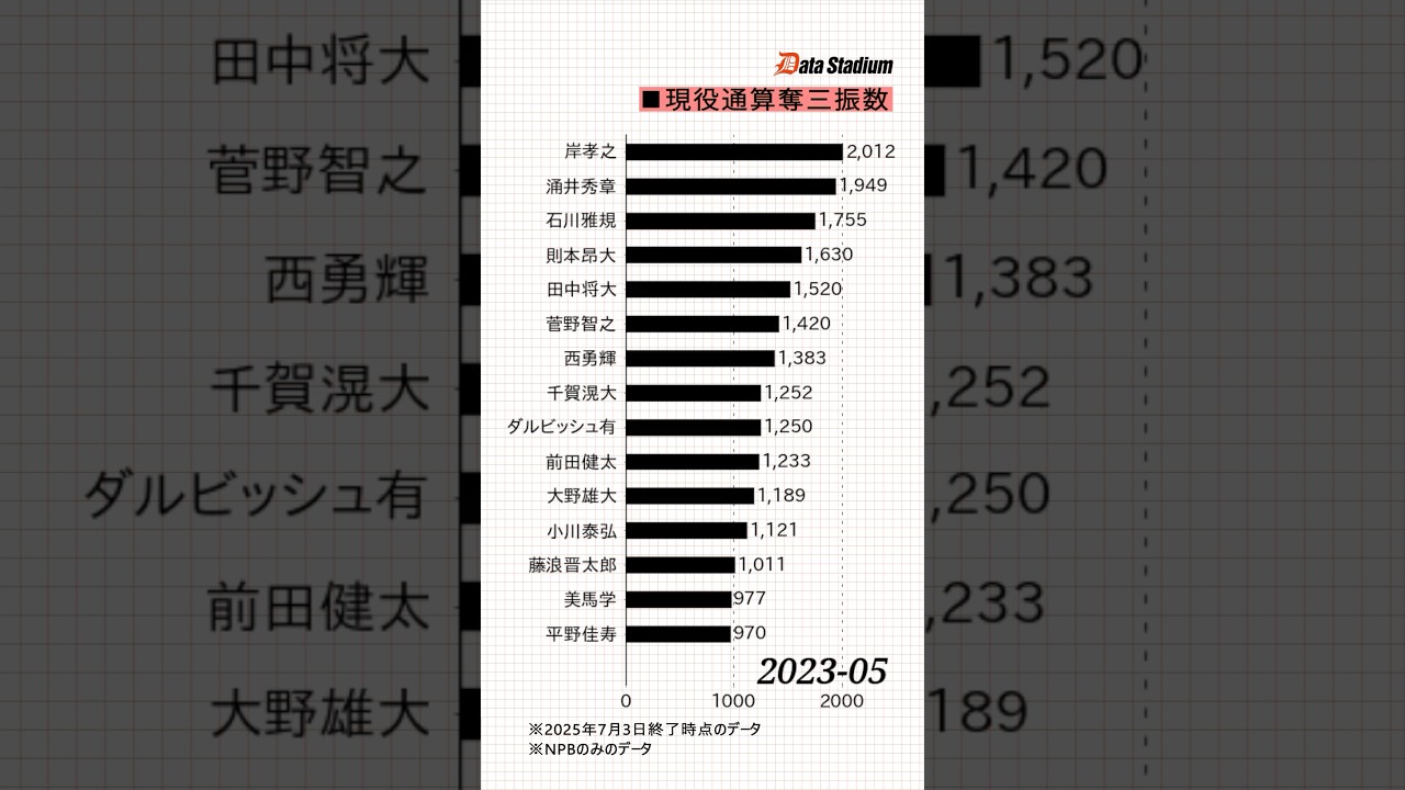 【現役投手のNPB通算奪三振数ランキング!】 #shorts #プロ野球 #データスタジアム