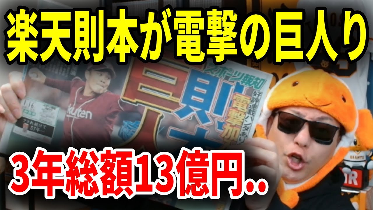 動画撮影終了後に新たな情報が入りました。なんと楽天・則本投手が3年総額13億円超えの契約で先発起用だそうです。