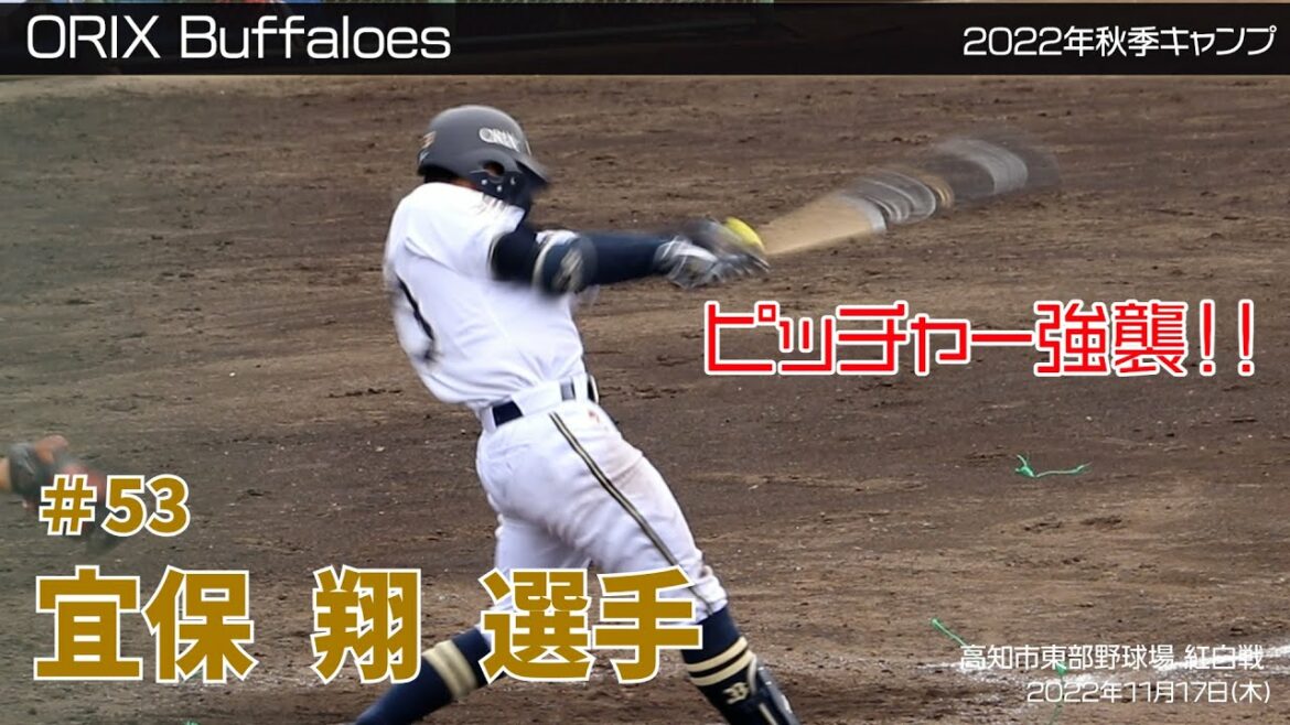 【オリックス】秋季キャンプ2022 in 高知 11月4日(金)~18日(金) 🏟高知市東部野球場 📝11月17日(木) 🔥紅白戦🔥白組 👀一瞬👀ピッチャー強襲の当たり!! (ピッチャーは、小木田敦也選手でした) #オリックス #宜保翔 #野球 ORIX Buffaloesオリックス・バファローズ宜保翔 NPBHUB.COM | The Fanbase of Nippon Baseball & Nippon Professional Baseball