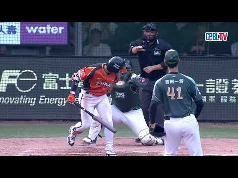 04/26 台鋼 VS 統一 五局下,邱智呈敲出生涯三百安同時為第一百打點,幫助獅隊擴大領先,吉田一将回敬獅隊單局三次三振