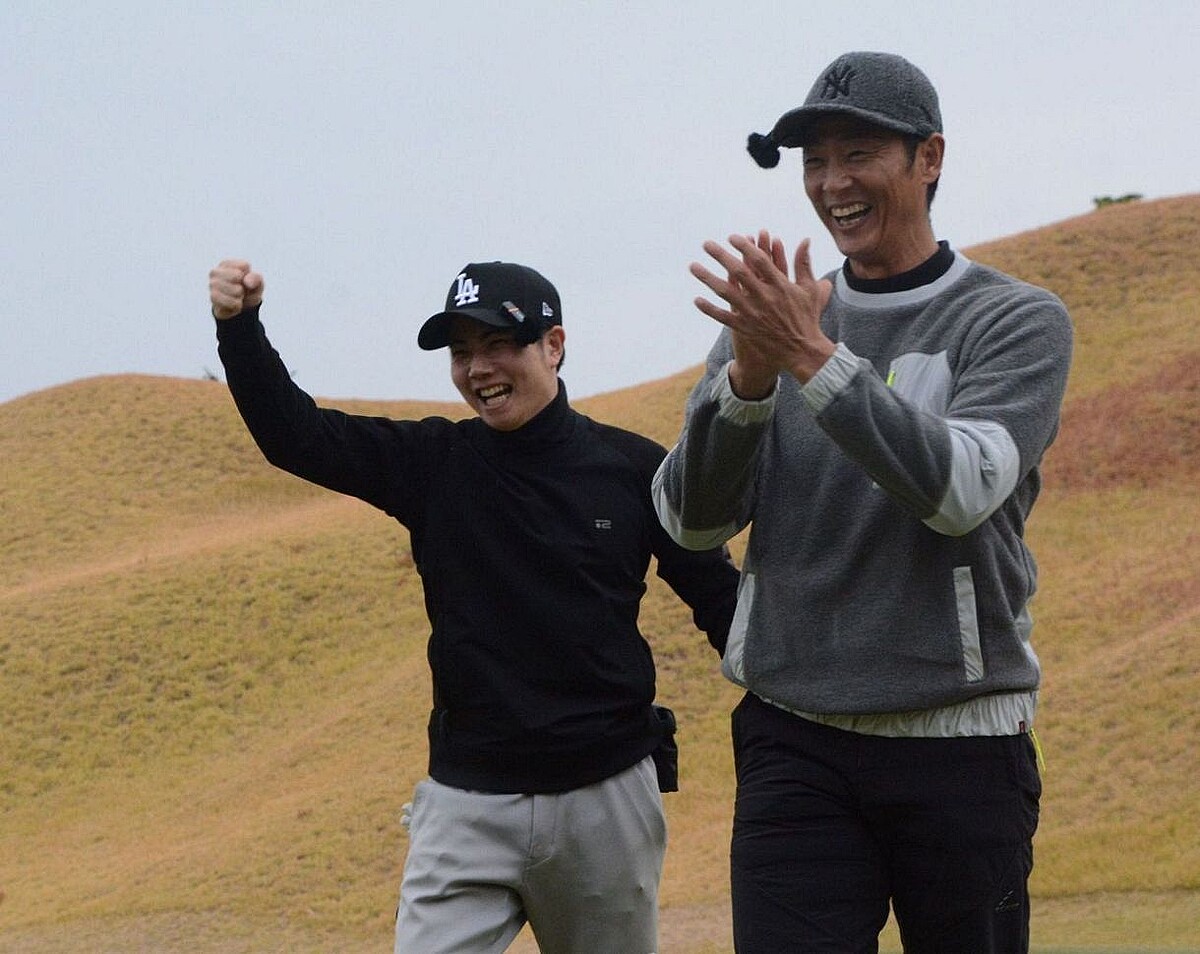 最後は圧巻の「バーディー締め」 ホークス実況アナとソフトバンク斉藤和巳2軍監督が笑顔のハイタッチ