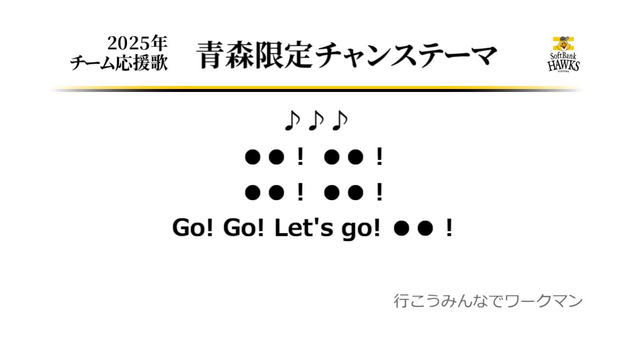 福岡ソフトバンクホークス 青森限定チャンステーマ [MIDI] 弘前開催の試合でソフトバンクが発動する応援歌、青森限定チャンステーマです。 行こうみんなでワークマンのフレーズから前奏的に入るパターンも確認されますが、 その辺はまちまちなようなので、私の音源ではCM版と同様の構成としました。 Fukuoka SoftBank HawksFukuoka SoftBank Hawks (Baseball Team)なんぶふじ応援歌福岡ソフトバンクホークス青森限定チャンステーマ NPBHUB.COM | The Fanbase of Nippon Baseball & Nippon Professional Baseball