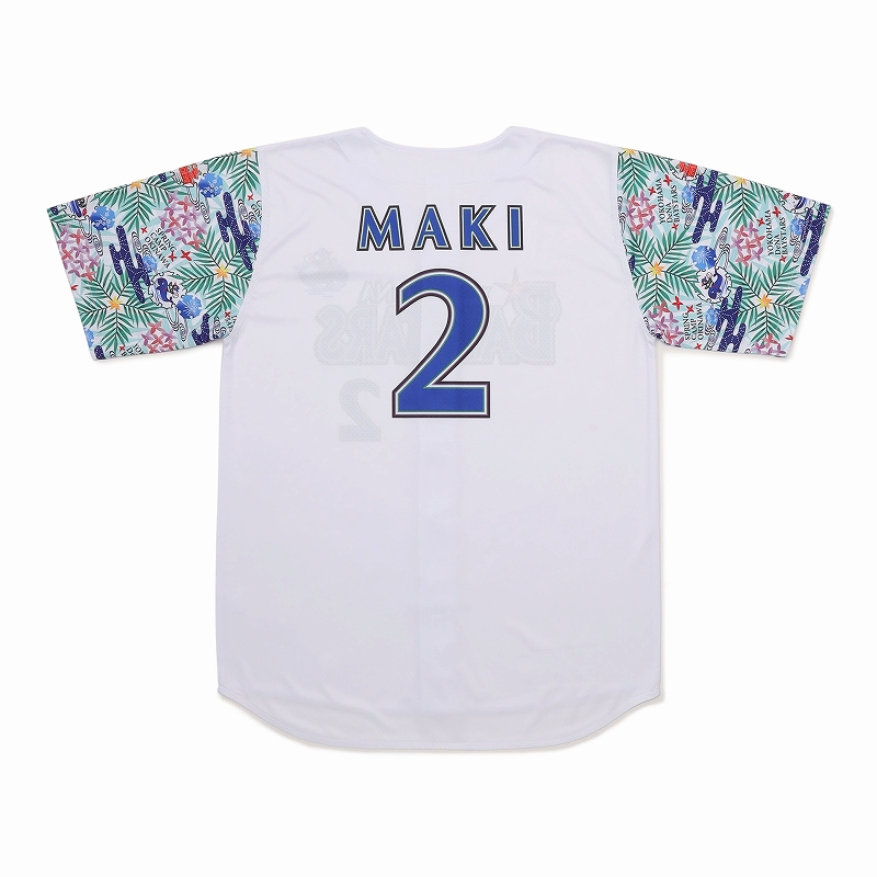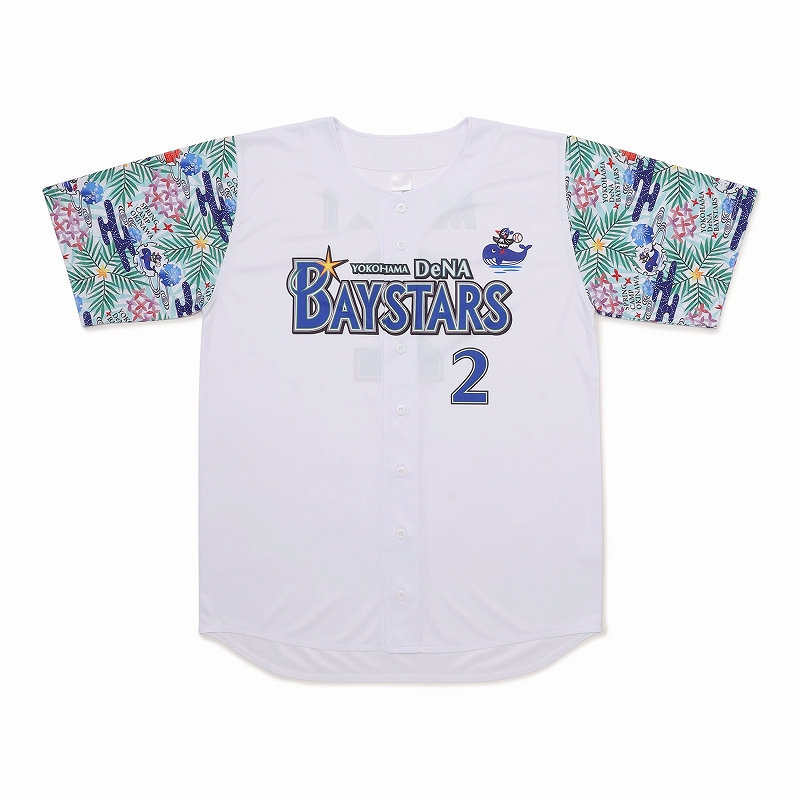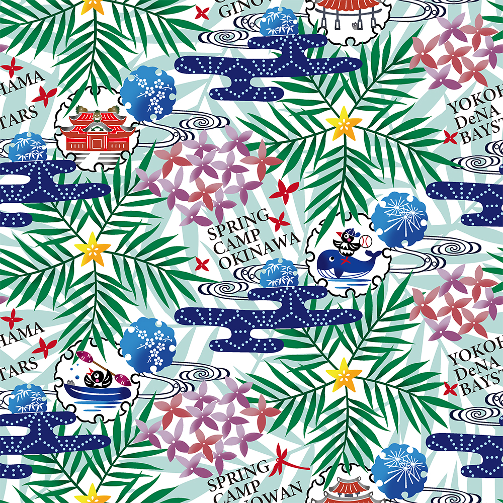 今年は永遠不変の常磐色をベースに採用し、今後も変わらないベイスターズと沖縄の深い絆を表現。「勝利」や「栄光」のシンボルとも呼ばれるヤシ、「喜び」や「情熱」の意を持ち、宜野湾市の花木でもあるサンダンカが咲く“沖縄ジャングル”におめでたい柄をぎゅっと盛り込みました!