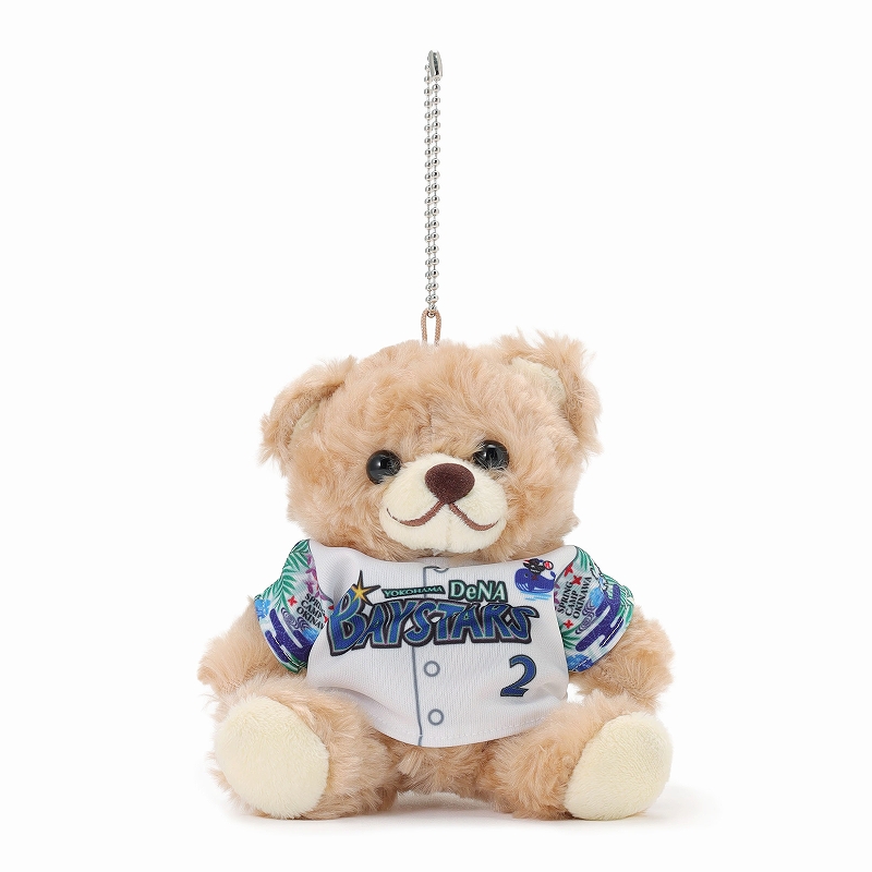 沖縄の伝統的柄「紅型」デザインの宜野湾キャンプ限定ベースボールシャツを着用したベアのマスコットキーチェーンです!