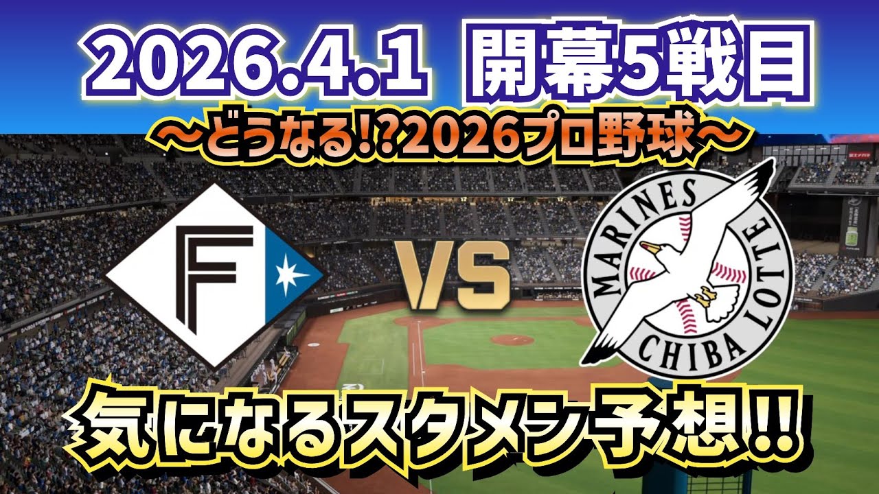 【最新予想】2026.4.1開幕5戦目 日ハムvsロッテ~気になるスタメン予想~
