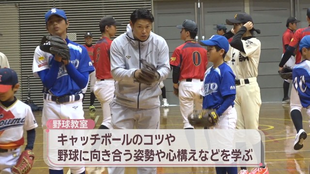 原口さんからキャッチボールのコツなど技術指導を受けたほか、野球に向き合う姿勢や心構えについて学びました。