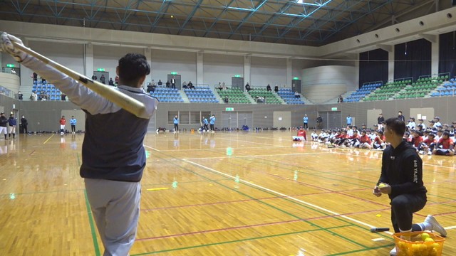 元阪神タイガース・原口文仁さんが小豆島で野球教室 小中学生の前で豪快なバッティングを披露 香川