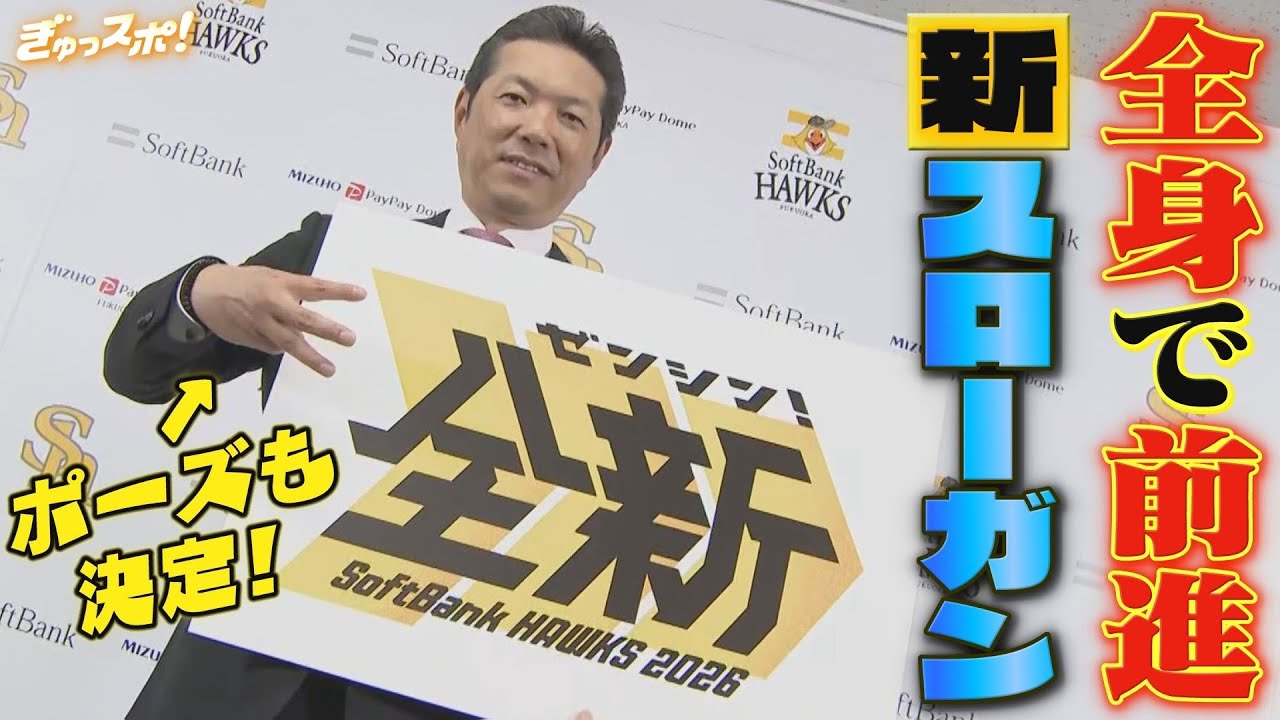 新スローガンは「全新(ぜんしん)」 全身で前進して全く新しいチームへ【ぎゅっスポ!ホークスこぼれ話】 2026年1月28日放送。 今シーズンのホークス新スローガンが決定! 全身で前進して全く新しいチームに変わることを込めて「全新(ぜんしん)」 福岡移転後初のリーグ3連覇を目指して、全身全霊で戦うシーズンが始まります! #福岡ソフトバンクホークス #珍プレー好プレー #パシフィックリーグ #カイラ #ぎゅっスポ! #プロ野球Fukuoka SoftBank HawksKBCアサデスアスリートシリタカスポーツセ・リーグパ・リーグホークスももスポ九州朝日放送福岡福岡ソフトバンクホークス野球 NPBHUB.COM | The Fanbase of Nippon Baseball & Nippon Professional Baseball