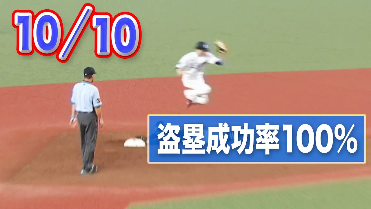 オリックス・佐野皓大は今季ここまで盗塁成功率100%を継続。パ・リーグで盗塁成功率10割の選手は他に2選手いるが、佐野皓大の10盗塁が最多。今後どこまで【100】を継続できるか、注目していきたい!