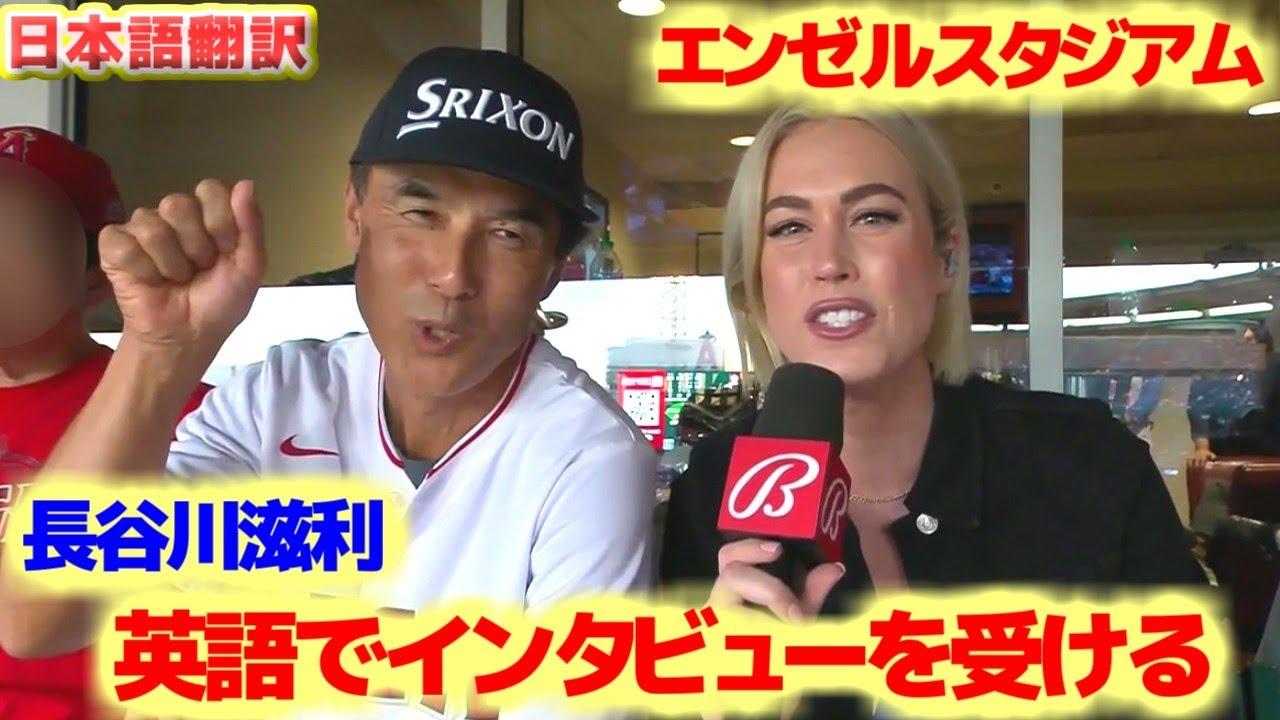 英語でインタビューに答える長谷川滋利 エンゼルスタジアムで現地メディアにインタビューを受ける 日本語翻訳字幕付