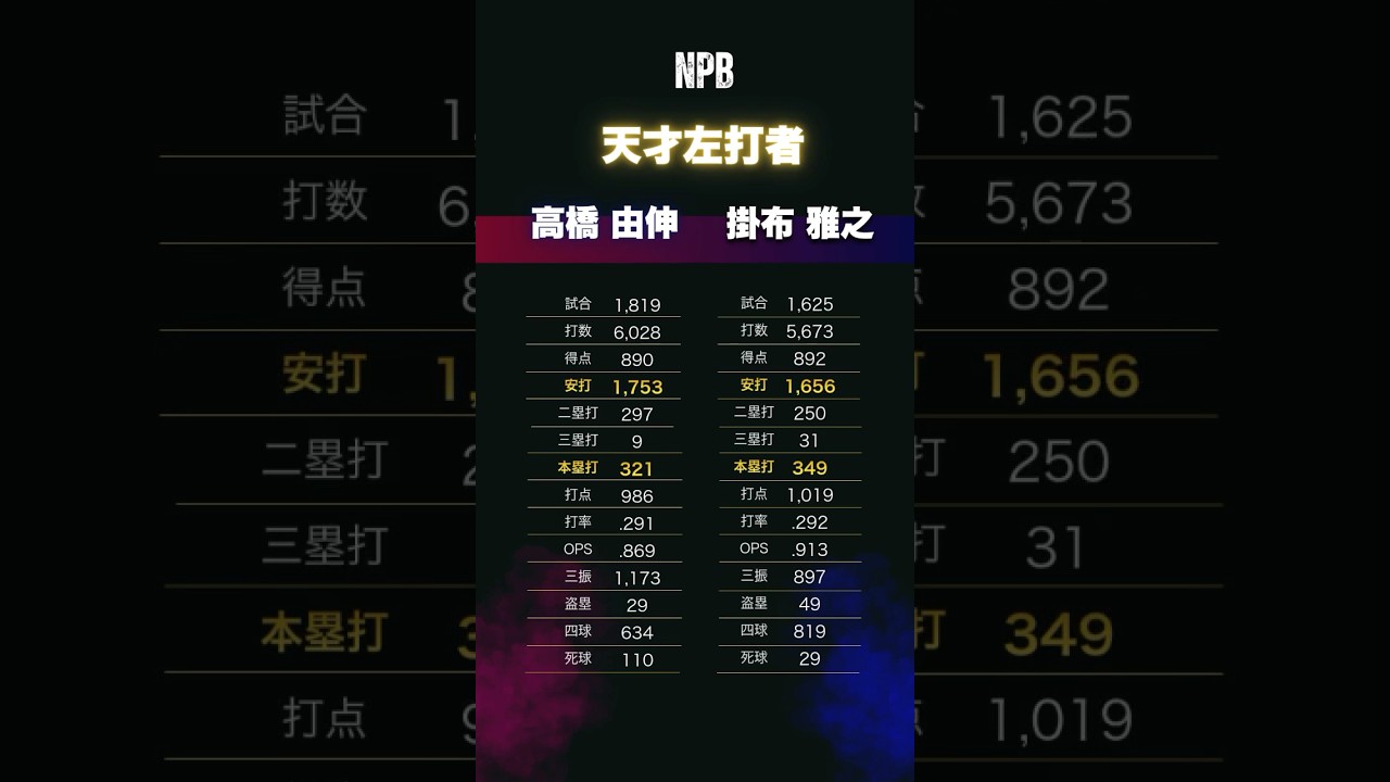 【伝統ある球団巨人&阪神】 左の天才バッター!高橋由伸&掛布雅之 NPB通算成績 日本プロ野球を代表する伝統球団、読売ジャイアンツと阪神タイガース。 その歴史の中で時代は違うものの「左の天才」と称された2人の打者「高橋由伸」 「 掛布雅之」 両球団の象徴とも言える左打者2名のNPB通算成績 を比較しながら振り返ります! とにかくフォームがカッコ良すぎる👍 Hanshin Tigers天才左打者巨人阪神阪神タイガース NPBHUB.COM | The Fanbase of Nippon Baseball & Nippon Professional Baseball