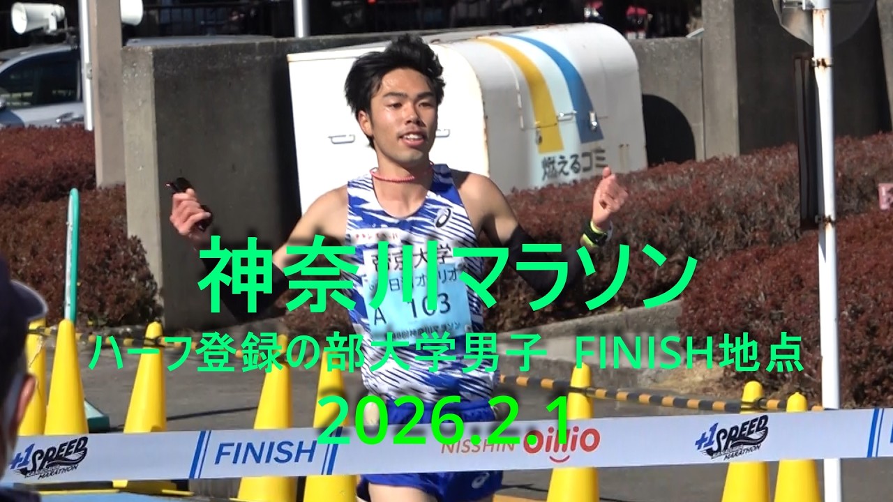 神奈川マラソン 男子ハーフの部 Finish 尾崎(帝京大)優勝/福冨(青学大)2位/牟田(駒大)3位/原田・髙好PB、石川・生江(中大) 2026.2.1
