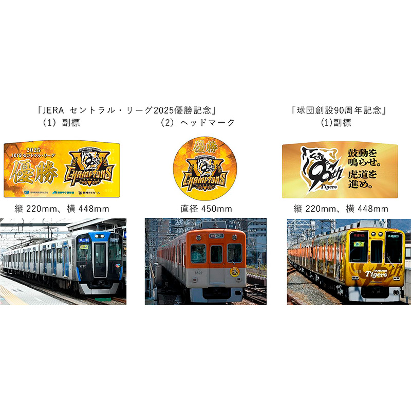 阪神電気鉄道では,2026(令和8)年2月5日(木)10時~11日(水祝)23時59分までを受付期間として,期間限定で実際に掲出していた阪神タイガース「JERA セントラル・リーグ2025 優勝記念」副標・ヘッドマーク(予備含む)と「球団創設90周年記念」副標を,鉄道甲子園オンラインショップで販売します(数量限定).