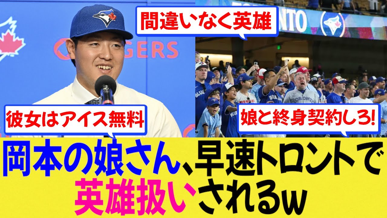 【海外の反応】岡本の娘さん、早速トロントで英雄扱いされお祭り騒ぎになってしまうw【MLB】【なんjプロ野球】