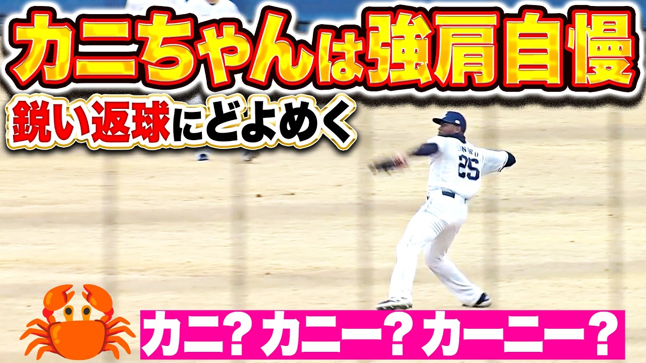 【カニビーム🦀】外野守備練習『活気あふれる外野陣…カニ!アンコー!ガッツマン!』