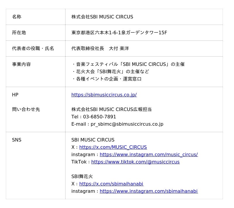株式会社SBI MUSIC CIRCUS pr_sbimc@sbimusiccircus.co.jp 03-6850-7891