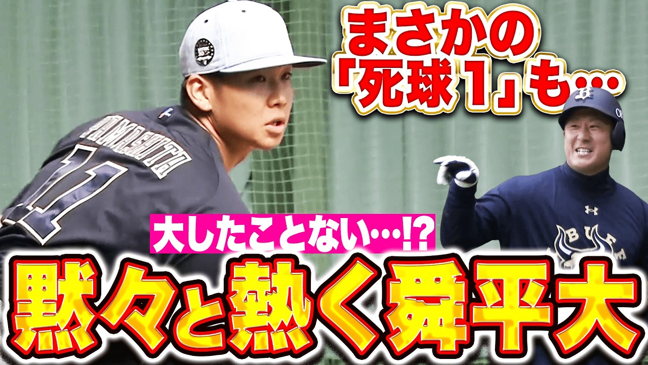 3年ぶり2度目の開幕投手を狙うオリックス・山下舜平大がブルペン入り!! 昨季は怪我に悩まされわずか1勝にとどまった。今季は完全復活、シーズン通しての活躍を目指し股関節に負担をかけない投げ方を模索中とのこと。ブルペンではバッターを立たせて投げ込むも…まさかの杉本裕太郎に死球!? 思わぬアクシデントがありましたが岸田監督も見守る中、若月健矢相手に投げ込みました!!