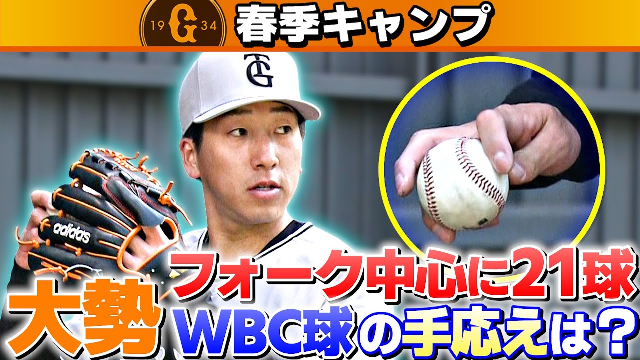 【巨人宮崎キャンプ】大勢WBC球の手応えは?フォーク中心に21球|2月7日取材