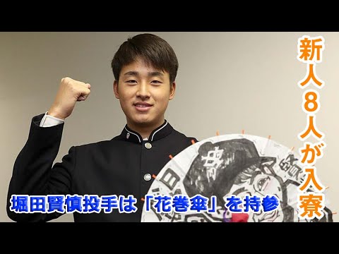 ドラフト1位の #堀田賢慎 投手は地元、岩手県花巻市の伝統工芸品「花巻傘」を持参しました。
