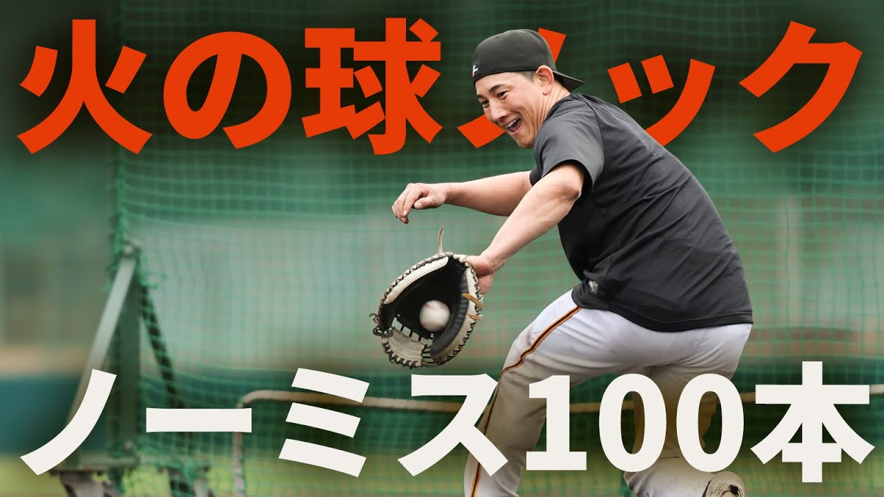 田口昌徳による”火の球”ノックを受けた小林誠司、坂本達也両選手!最後は石井琢朗二軍監督と共に、ノーミス100本を達成しました!